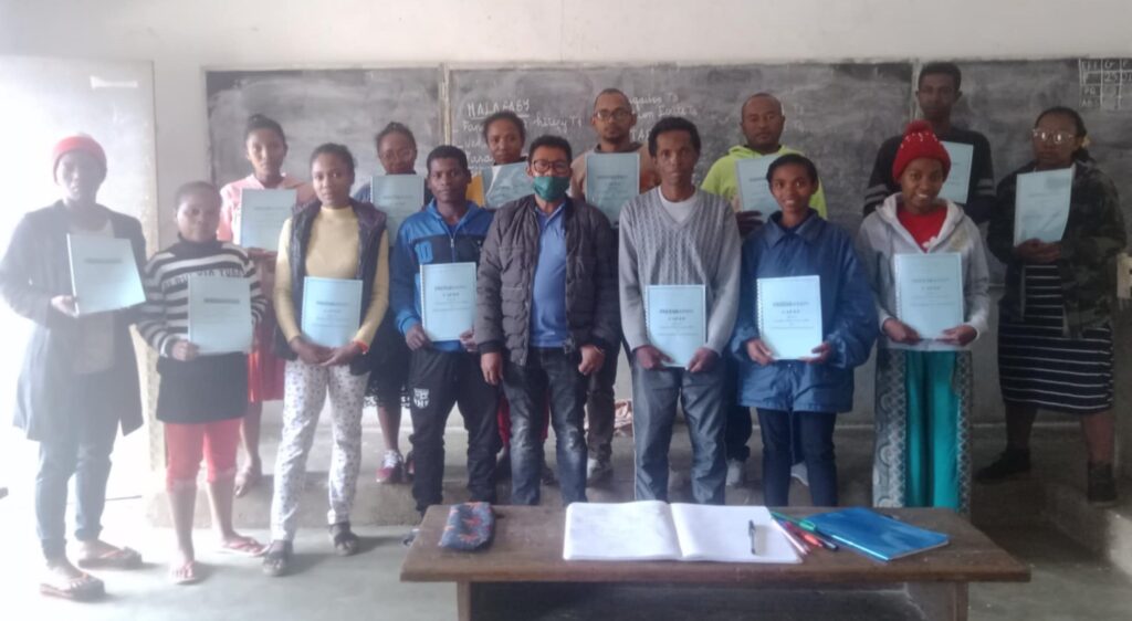 Voici une bonne nouvelle : la ZAP d’Andasibe compte en ce début d’année scolaire 18 lauréats de l’examen pédagogique (7 CAE/EP – candidats niveau BEPC et 11 CAP/EP – candidats titulaires du BAC ou équivalent) parmi les enseignants « FRAM » (recrutés et payés par les associations de parents FRAM). Cet examen, dont la préparation a été financée par notre association, garanti les compétences pédagogiques des enseignants et est sensé faciliter l’obtention de la titularisation en tant que fonctionnaire. Nous sommes très fiers d’avoir accompagné ces enseignants motivés ! Si ces compétences reconnues augurent une meilleure prise en charge des élèves nous espérons qu’elles seront aussi une porte d’entrée pour un avenir plus sûr.