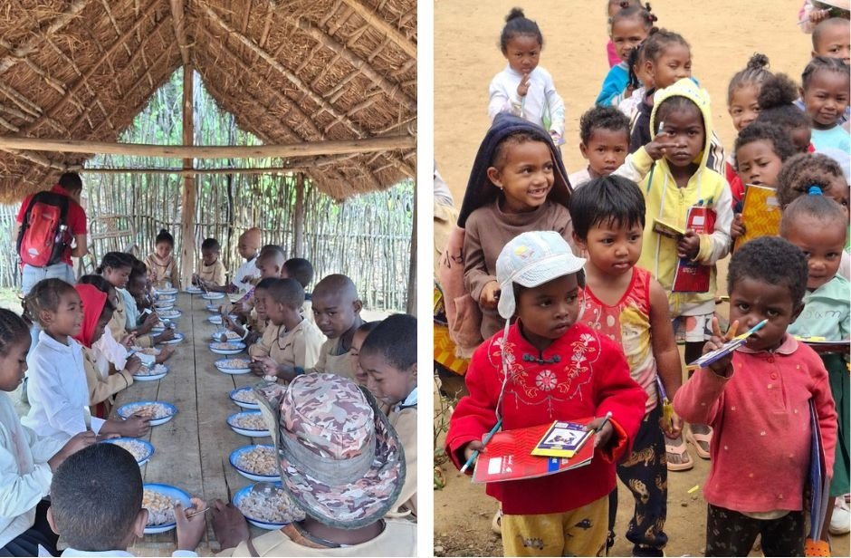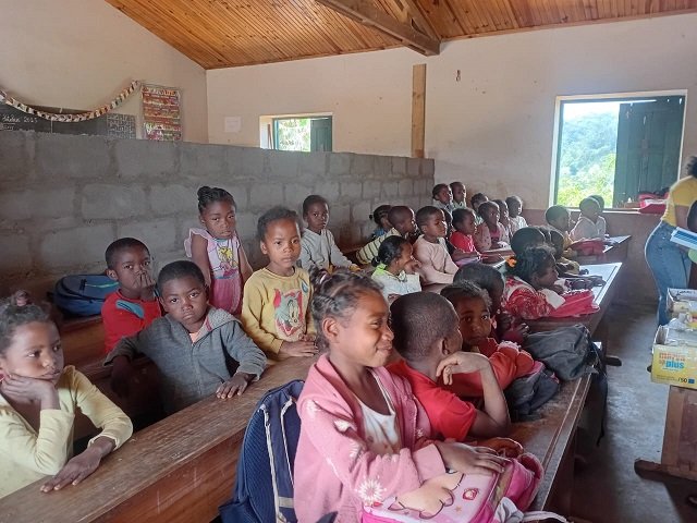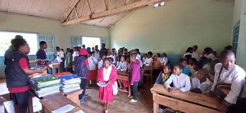 Nous terminons les distributions par une nouvelle école de brousse, où nous arrivons pendant la pause déjeuner et la cantine gérée par une association locale. Voilà c’est fini pour cette année, 4 journées intenses ! Mais la mission n’est as finie, nous avons donné rendez-vous aux enseignants le samedi 15 novembre pour une friperie solidaire géante (beaucoup de vêtements et matériel à partager) et une consultation ophtalmo (+lunettes pour ceux qui en ont besoin) en partenariat avec un médecin de Moramanga.