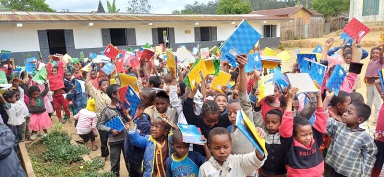 Nous terminons les distributions par une nouvelle école de brousse, où nous arrivons pendant la pause déjeuner et la cantine gérée par une association locale. Voilà c’est fini pour cette année, 4 journées intenses ! Mais la mission n’est as finie, nous avons donné rendez-vous aux enseignants le samedi 15 novembre pour une friperie solidaire géante (beaucoup de vêtements et matériel à partager) et une consultation ophtalmo (+lunettes pour ceux qui en ont besoin) en partenariat avec un médecin de Moramanga.